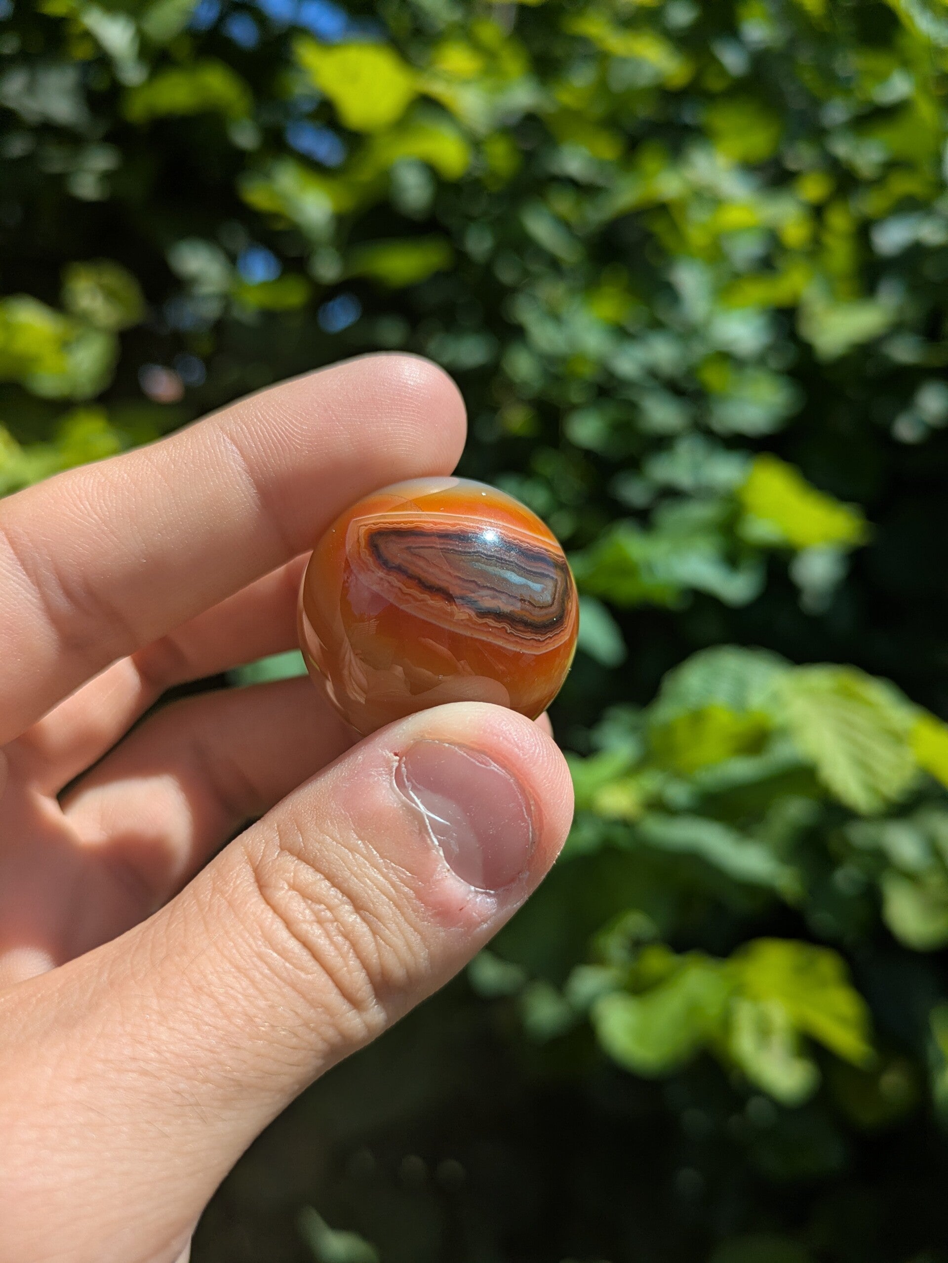 🌿 En sphère, la cornaline diffuse son énergie de manière douce mais constante, idéale pour dynamiser une pièce, accompagner une séance de travail, ou favoriser la méditation active.