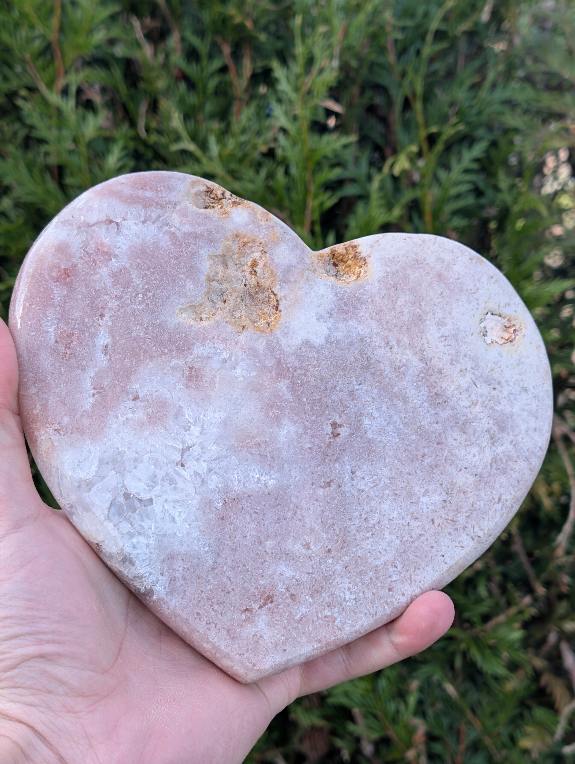 Une Qualité Rare venue du Brésil Extraite des célèbres gisements du Rio Grande do Sul au Brésil, cette Pink Amethyst (Améthyste Rose) se distingue par sa couleur délicate issue d’inclusions naturelles d’hématite. Contrairement à l'améthyste violette classique, cette variété offre des teintes allant du rose poudré au pêche, parsemées de zones de druses scintillantes (micro-cristaux) visibles en surface.